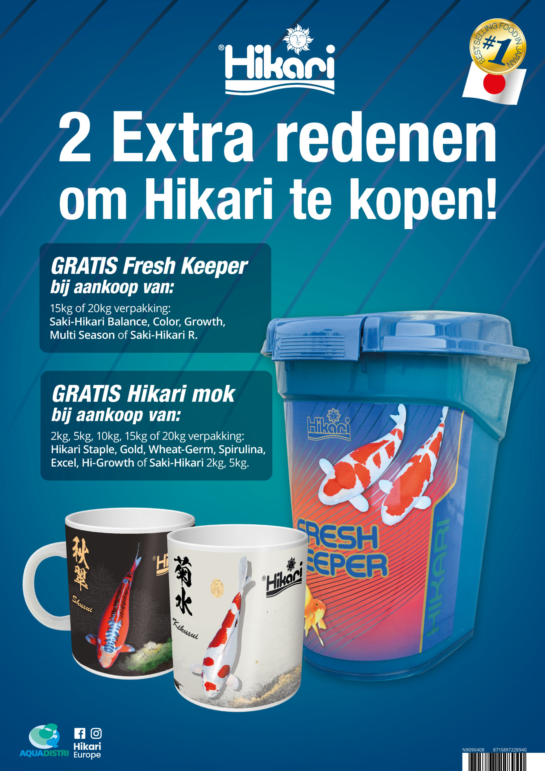 Voor onze trouwe klanten hebben wij ieder voorjaar leuke acties, zoals de speciale Hikari®-mokken, een verzamelitem voor de Koi liefhebber en bewaaremmers bij de grote 15 kg zakken.